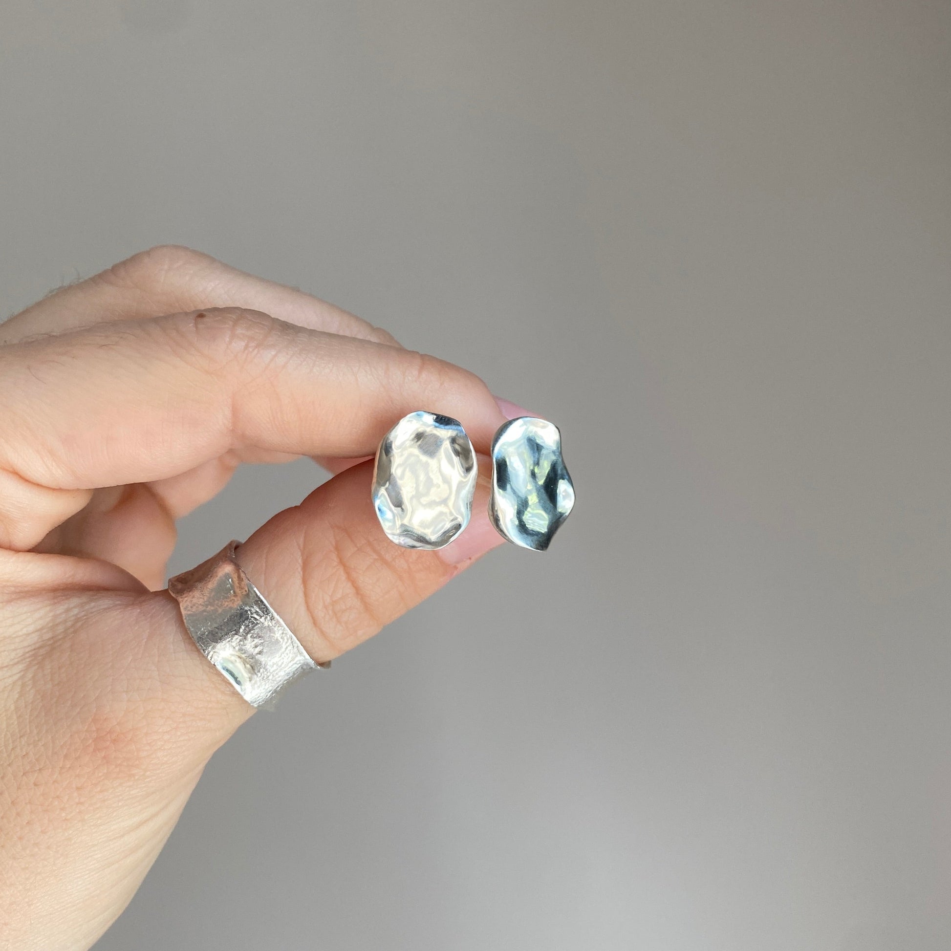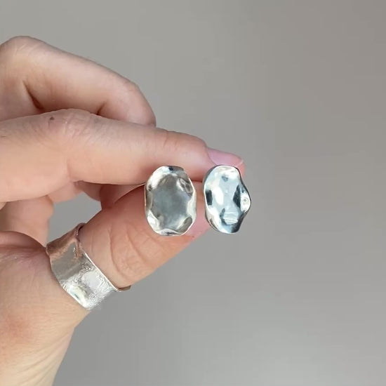 These studs were hand-sculpted from silver sheets. They are approximately 0.66 inches tall.